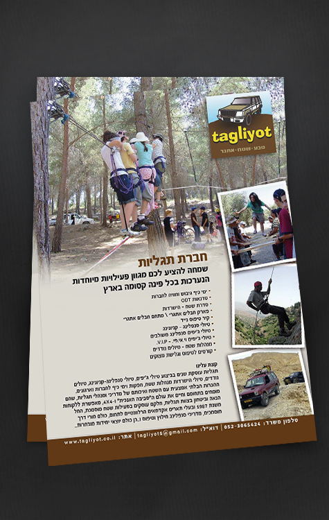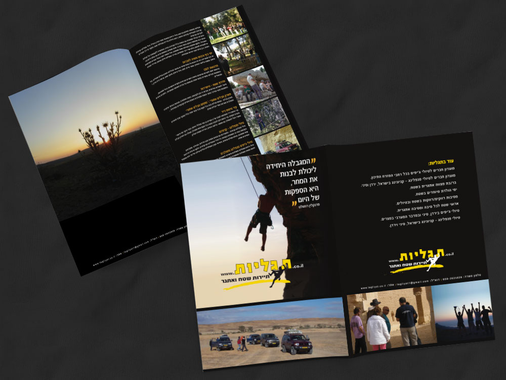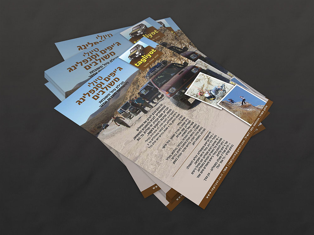 פולדר כיס עוצב לחברת טיולים המתמחה בהפקת טיולים לקבוצות בארץ ובחו"ל.